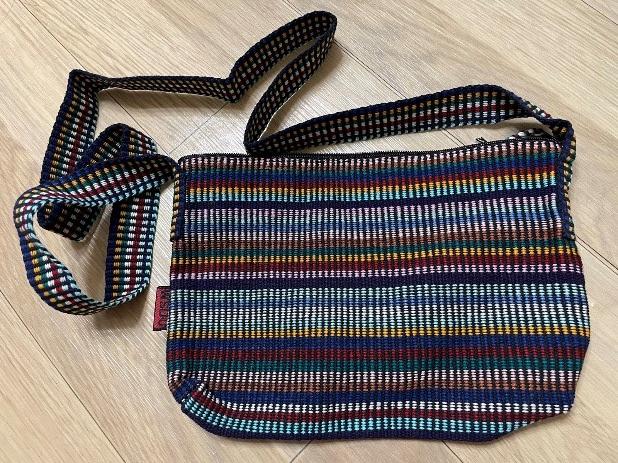 하모니 파우치백, 먼저 색감은 괜찮았고 마감부분이 매끄러운 걸로 보아 내구성이 튼튼해보였습니 다. 끈의 길이를 조절할 수가 없어서 조금 아쉬웠습니다.