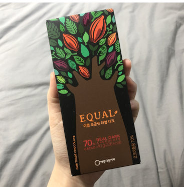 블라인드 테스트 결과, 공정무역 제품은 시판되는 다른 제품들에 비해 단맛이 덜하고 쓴맛이 조금 강한 편이었습니다. 뒷맛의 경우 2.7점로 시판 제품들의 평균과 비슷했습니다. 결과로 보아 공정무역 초콜릿은 묵직한 쌉쌀함 뒤에 은은한 달달함이 더해진 깔끔한 다크 초콜릿 맛으로 설탕의 단맛보다는 카카오 고유의 쌉쌀한 맛을 좋아하는 사람들이 선호할 것 같습니다. 실제로 테스트에 사용된 공정무역 초콜릿은 ‘이퀄 초콜릿’으로 페루에서 자란 카카오에 합성첨가물이나 식물성 유지 등의 첨가물 없이 사탕수수설탕과 우유만을 넣어 만들어져 순수 카카오의 맛을 느낄 수 있다고 합니다. 또한 몇몇 실험 참가자는 공정무역 초콜릿에서 처음 먹어보는 특유의 향이 난다고도 말했습니다.